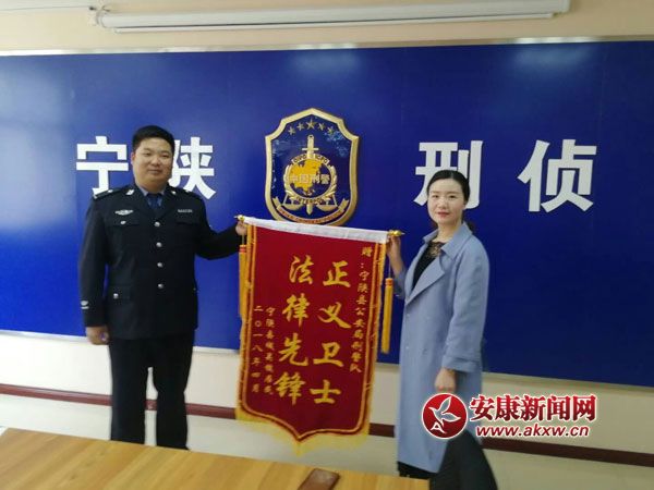 安康新聞網(wǎng)訊(通訊員 張敏 鄧皓)4月9日,寧陜縣城關(guān)鎮(zhèn)居民呂女士來到寧陜縣公安局刑偵大隊(duì)一中隊(duì),為辦案民警送上一面印有“正義衛(wèi)士,法律先鋒”字樣的錦旗……