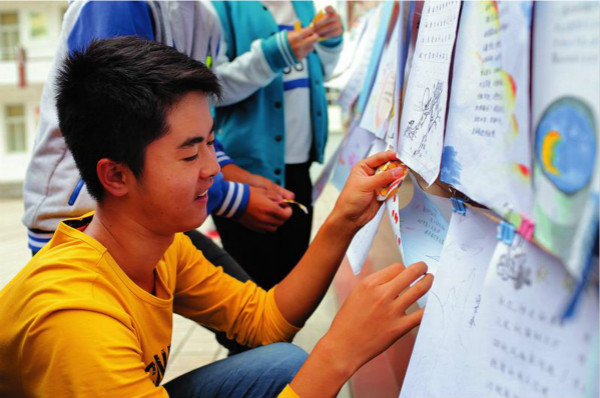 9月25日,為了迎接即將到來(lái)的中秋節(jié),秦嶺深處的寧陜縣城關(guān)高中在校園里舉行“中秋詩(shī)詞歌賦展”,吸引了全校學(xué)生的參加;顒(dòng)中,學(xué)生們自己動(dòng)手用繪畫、詩(shī)詞歌賦……