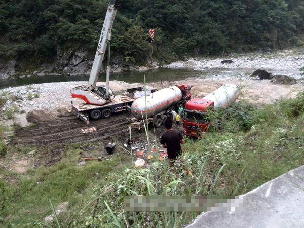 8月27日,一輛液化氣重型罐車(chē)由西安駛往安康,途徑210國(guó)道寧陜縣江口鎮(zhèn)內(nèi)時(shí),由于雨天路滑在一急轉(zhuǎn)彎處發(fā)生意外,車(chē)翻滾入路外的河灘里,車(chē)輛受損乘員嚴(yán)重受傷,……