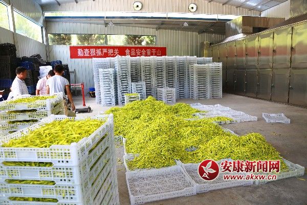 工人們將經(jīng)過殺青、晾曬后的黃花菜裝入烘烤設(shè)備中進(jìn)行加工。Jzn安康新聞網(wǎng)