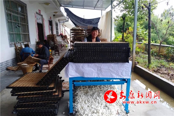 “通過幾季養(yǎng)蠶比較,用快速取繭機取100個塑框木質(zhì)方格蔟上的蠶繭也就40多分鐘,而100個紙質(zhì)方格簇10來個人摘繭最快也要一天半,對比起來快速取繭機太省時省力高效了。”蔡明勇對快速取繭機很滿意,他打算來年將家中的方格簇進行大改良,全部用上塑框木質(zhì)方格蔟。