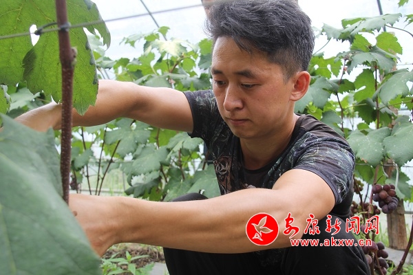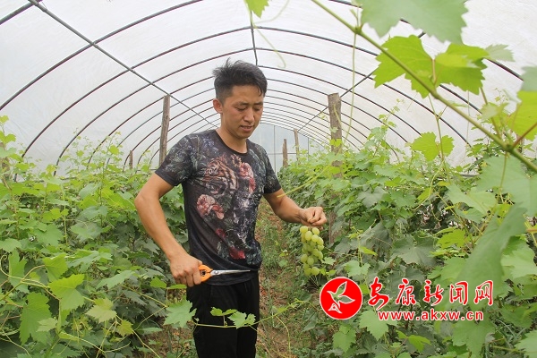 6年前,政府為引導(dǎo)村民發(fā)展生態(tài)產(chǎn)業(yè)種植,提高農(nóng)業(yè)產(chǎn)業(yè)收入,下大力投入資金將原先的露天菜地建成了生態(tài)產(chǎn)業(yè)園連片設(shè)施大棚。但很多本地村民因?yàn)椴欢r(nóng)業(yè)科技,不懂農(nóng)業(yè)產(chǎn)業(yè)市場(chǎng),對(duì)建好的設(shè)施大棚望而卻步。譚文軍是第一個(gè)到產(chǎn)業(yè)園租賃設(shè)施大棚栽種葡萄的外村人。當(dāng)年,他引進(jìn)了戶太8號(hào)品種1萬(wàn)余株,栽種30畝60個(gè)大棚。從2016年開始,這批葡萄進(jìn)入采摘期,從剛開始的畝產(chǎn)2000斤,到現(xiàn)在畝產(chǎn)3000斤,譚文軍說(shuō),明年進(jìn)入豐產(chǎn)期,畝產(chǎn)還將提高到4500斤左右。