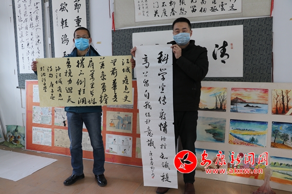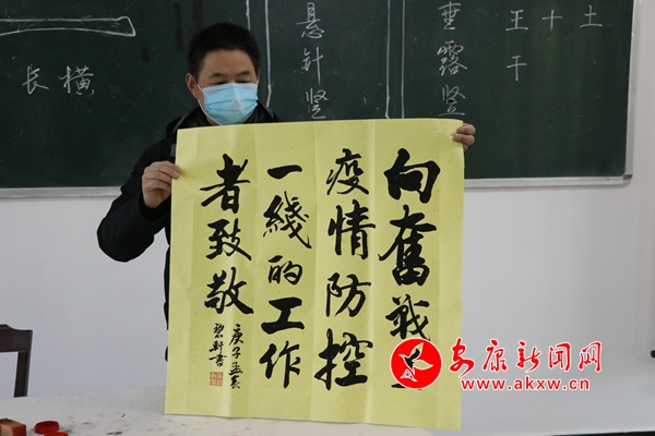 本網(wǎng)訊 (通訊員 張磊 ) 自新冠肺炎疫情阻擊戰(zhàn)打響以來,石泉縣教體科技系統(tǒng)廣大職工既有不懼危險,日夜奮戰(zhàn)在防控一線的志愿者,也有多名美術(shù)教師和書法愛好者自發(fā)行動,用書法、繪畫等藝術(shù)作品向一線抗“疫”英雄致敬,凝聚抗“疫”合力,堅決戰(zhàn)勝疫情,期盼生產(chǎn)生活早日恢復(fù)正常。