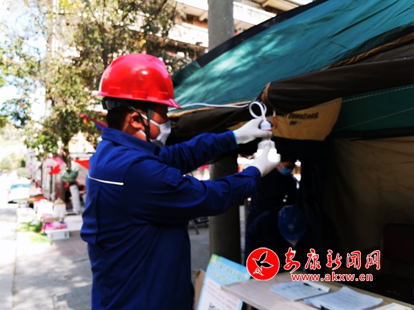 隨即接受任務(wù)的城區(qū)供電所所長(zhǎng)李章彥迅速落實(shí)了一系列防疫期間的保障措施:在保障居民用電的同時(shí),針對(duì)不允許小區(qū)居民隨意外出的現(xiàn)狀設(shè)立服務(wù)流動(dòng)車(chē);為不會(huì)上網(wǎng)繳費(fèi)的居民和線路故障的居民提供上門(mén)服務(wù);為各勸返臺(tái)、篩查點(diǎn)免費(fèi)提供電表、電線等設(shè)備物資,免費(fèi)裝電、走線。