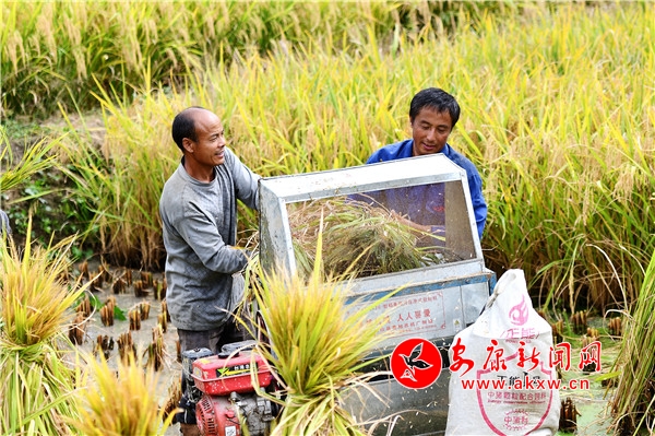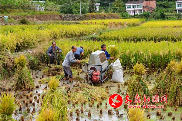 近日,石泉城關(guān)鎮(zhèn)4500畝水稻陸續(xù)進(jìn)入收割期,農(nóng)戶門搶抓晴好天氣,進(jìn)行水稻收割、搬運(yùn)、貯藏,雷興村、絲銀壩村、黃荊壩社區(qū)等村(社區(qū))也首次采用機(jī)器代替手動(dòng)收割,確保確保秋糧顆粒歸倉(cāng)。(董長(zhǎng)松/攝)rdf安康新聞網(wǎng)