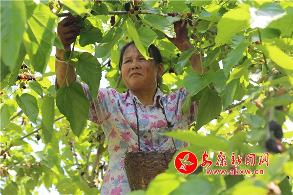 以“滄海桑田”聞名的明星村種植桑樹上千余畝,其中果桑面積占有300余畝,盛果期的果桑樹掛果量可達2500斤每畝。五月正是桑葚采摘上市的時候,果園里到處都能看到農戶們忙著采摘成熟桑葚的身影。據(jù)了解,這些農民都是附近的村民,他們將桑葚采摘后送往加工廠,每斤桑葚能賺1元錢,手腳麻利的村民一天能摘上百斤,也算是一筆可觀的收入。