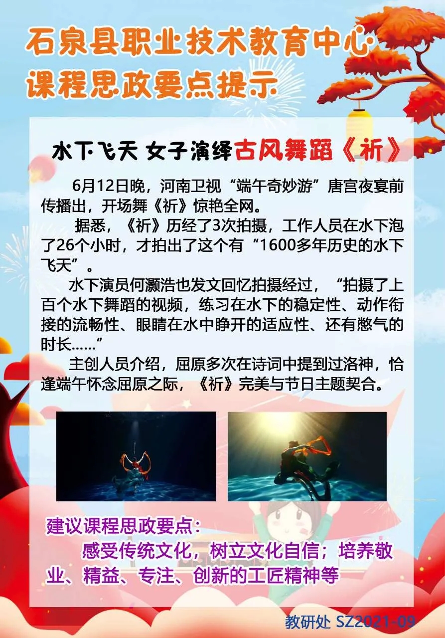 為進(jìn)一步推動(dòng)教師在教學(xué)中滲透思政教育,提升課程思政的實(shí)效性,縣職教中心教研處積極搜集具有育人功能的時(shí)政新聞,結(jié)合中職學(xué)生的認(rèn)知特點(diǎn),將其整理制作成精美的《課程思政要點(diǎn)提示》小卡片,由思政專業(yè)課教師把關(guān)后,及時(shí)向全體教職工推送。小卡片涵蓋家國(guó)情懷、政治認(rèn)同、人文修養(yǎng)和職業(yè)素養(yǎng)等思政內(nèi)容,通過介紹近期熱點(diǎn)新聞和提出建議要點(diǎn),為教師在各學(xué)科課程中開展課程思政提供素材和方向。