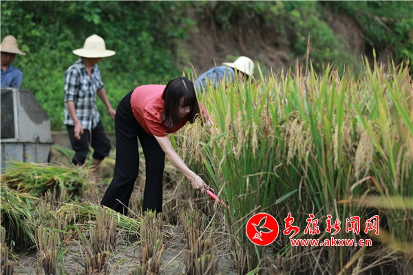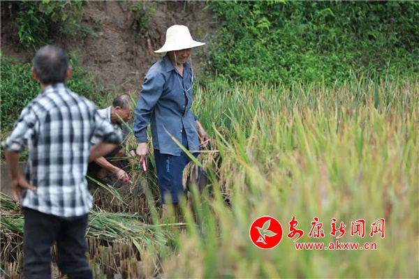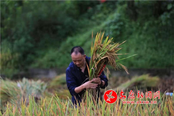 石泉縣城關(guān)鎮(zhèn)草池灣水稻豐收啦