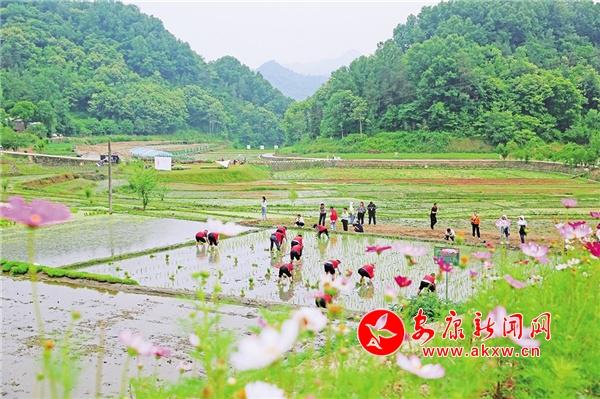 開幕式現(xiàn)場(chǎng),石泉縣城關(guān)第二小學(xué)的師生代表共同宣讀了朱鹮保護(hù)倡議書,與會(huì)嘉賓還向石泉縣新成立的朱鹮保護(hù)志愿者服務(wù)隊(duì)進(jìn)行了授旗。當(dāng)?shù)劓?zhèn)村干部組成志愿服務(wù)插秧隊(duì),與群眾同耕“連心田”,助農(nóng)“三夏”生產(chǎn),共同守護(hù)糧食安全。鎮(zhèn)村干部挽起袖子褲腿,下到稻田里,帶領(lǐng)大家一起體驗(yàn)插秧的樂趣,傳遞以傳統(tǒng)耕作方式踐行有機(jī)農(nóng)業(yè)理念,表達(dá)擼起袖子加油干,全面推進(jìn)鄉(xiāng)村振興的信心和決心。