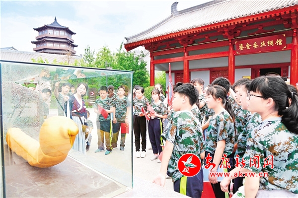 作為西北蠶桑第一大縣,石泉縣已經(jīng)形成了從制種、養(yǎng)蠶到繅絲、織綢的蠶桑全產(chǎn)業(yè)鏈,加上國寶“鎏金銅蠶”出土地加持,聲名遠(yuǎn)播。依托悠久的興桑養(yǎng)蠶歷史和金蠶文化,石泉縣于2020年啟動(dòng)池河金蠶小鎮(zhèn)研學(xué)基地建設(shè),以明星村、五愛村、池河集鎮(zhèn)為核心,建成金蠶之鄉(xiāng)展覽館、鎏金銅蠶文創(chuàng)產(chǎn)品展銷中心、桑棲云村研學(xué)青年旅舍、鎏金銅蠶文化公園、醉美桑海博覽園、荷塘月色體驗(yàn)區(qū)等項(xiàng)目,圍繞“桑、蠶、絲、史、勞、游”六大主題,開發(fā)研學(xué)系列課程52項(xiàng),被命名為陜西省中小學(xué)生研學(xué)實(shí)踐教育基地。