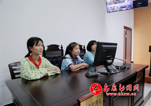 本網(wǎng)訊(通訊員 潘蕾蕾)為加強(qiáng)對(duì)未成年人的法治宣傳教育,促進(jìn)青少年健康全面發(fā)展,6月3日,石泉法院后柳法庭舉辦“‘未’你而來(lái) 法護(hù)成長(zhǎng)“法庭開(kāi)放日”活動(dòng),邀請(qǐng)后柳鎮(zhèn)中心小學(xué)40余名師生走進(jìn)法庭,參觀訴訟服務(wù)大廳、審判法庭,敲法槌、“客串”法官,“零距離”感受法庭的莊嚴(yán)。