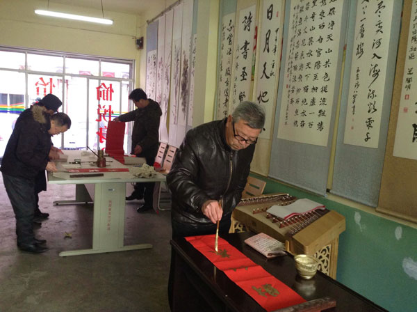 石泉書法家為社區(qū)居民義寫春聯(lián)