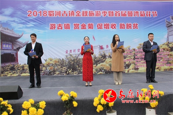 安康新聞網(wǎng)訊(通訊員 陳和林) 11月10日,旬陽縣蜀河鎮(zhèn)曼灣村菊花節(jié)在美麗的菊花園如期舉行,賞婀娜菊花、品古鎮(zhèn)美食、看精彩演出,旬陽縣內(nèi)外數(shù)千名干部群眾和游客歡聚一堂,共慶菊花豐收季。本次活動由旬陽聯(lián)村單位縣委統(tǒng)戰(zhàn)部及蜀河鎮(zhèn)黨委、政府聯(lián)合組織,縣委組織部、縣發(fā)改局、文廣局等單位參加活動。