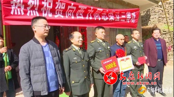 喜慶的鑼鼓聲中,旬陽縣退役軍人事務局為白柳鎮(zhèn)西溝河村向明剛佩戴大紅花,并送去了喜報、慰問金以及親切的問候。向明剛的兒子向西力2013年從遼寧大學入伍,服役于武警四川總隊某中隊,在參加武警四川總隊比武獲得個人第一名,并授予三等功。