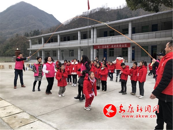 最后,共青團(tuán)安康市委書(shū)記盧存安、安康市中醫(yī)院黨委副書(shū)記、副院長(zhǎng)胡章學(xué)和“暖流計(jì)劃”志愿者們與孩子們進(jìn)行了跳繩活動(dòng)。