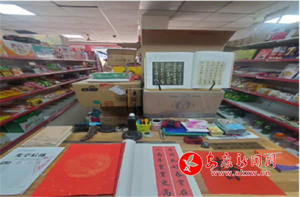 走進店里,除了琳瑯滿目的商品外,貨架旁還放置了一張桌子,那是沈古頂日常練習(xí)書法的地方。他每天都會抽出兩到三小時練字,從不落下一天。常有老顧客向他求墨寶,他總是欣然答應(yīng),為顧客認真寫好每幅字。近年,縣煙草公司在商戶中成立了誠信經(jīng)營互助組織,沈古頂?shù)?ldquo;字謎”隊伍更加壯大了。他不但用書法為自己筑就了一方桃花源,也在大家之間架起了一座促進交流、建立友誼的連心橋。