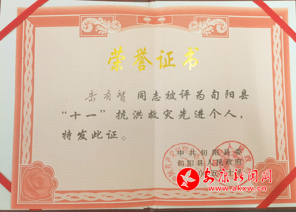 而岳有智也用自己的實(shí)際行動(dòng)真正詮釋了軍人“退伍不褪色”的內(nèi)涵,被組織表彰為“抗洪救災(zāi)先進(jìn)個(gè)人”。