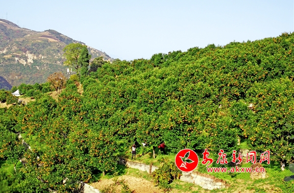 旬陽(yáng)市呂河鎮(zhèn)冬青村漫山的“黃金果”獅頭柑和前來賞玩采摘的游客