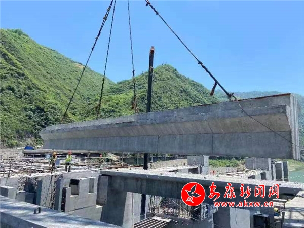 本網(wǎng)訊(通訊員 王建華 陳潔)2022年6月14日20時51分,隨著旬陽水電站大壩標七號孔最后一榀交通梁吊裝到位,右岸壩頂交通梁全部架設(shè)完成,標志著旬陽水電站全長462米的大壩實現(xiàn)了全線貫通。