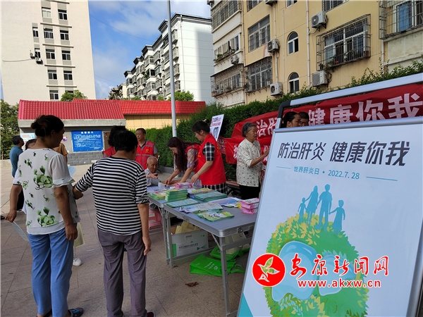 本網(wǎng)訊(通訊員 陳子賢)2022年7月28日是第12個(gè)世界肝炎日,為進(jìn)一步普及各種肝炎的防治知識(shí),提升社區(qū)居民防治意識(shí),增強(qiáng)自我保護(hù)能力。7月28日早上,旬陽(yáng)市城關(guān)中心衛(wèi)生院聯(lián)合市疾控中心、市健康教育中心走進(jìn)康花園小區(qū)廣場(chǎng),開展“防治肝炎,健康你我”主題宣傳活動(dòng)。