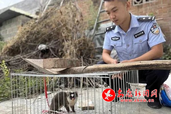 當(dāng)日中午,呂河派出所接到群眾報(bào)警稱(chēng),“在其家中鐵籠里關(guān)了一只像果子貍的野生動(dòng)物,請(qǐng)求幫助。”接警后,值班民警迅速帶隊(duì)前往處置。到達(dá)現(xiàn)場(chǎng)后,民警看到了這只“不速之客”,是一只灰褐色皮毛的小動(dòng)物,臉?biāo)坪,嘴似豬,花白面,時(shí)不時(shí)上躥下跳,身體狀況還不錯(cuò)。民警經(jīng)過(guò)仔細(xì)比對(duì)和觀察,并經(jīng)林業(yè)部門(mén)工作人員確認(rèn),發(fā)現(xiàn)該動(dòng)物并非果子貍,而是一只鼬獾,屬于國(guó)家三級(jí)保護(hù)動(dòng)物。