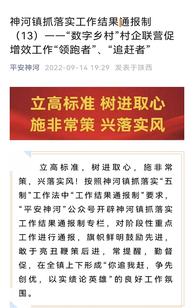 一套管理制度,持續(xù)鞏固深化作風(fēng)建設(shè)。為了持續(xù)鞏固深化作風(fēng)建設(shè),鎮(zhèn)黨委政府在實(shí)行干部管理日簽到制、去向登記制、周例會(huì)制等管理制度的基礎(chǔ)上,堅(jiān)持立高標(biāo)準(zhǔn),樹進(jìn)取心、施非常策,興落實(shí)風(fēng),制定出臺(tái)了“工作安排清單制、工作內(nèi)容量化制、工作進(jìn)度限時(shí)制、工作成果通報(bào)制、工作成效獎(jiǎng)懲制”的“五制”工作法,圍繞“經(jīng)濟(jì)穩(wěn)增長(zhǎng)、項(xiàng)目建設(shè)、招商引資、營(yíng)商環(huán)境、鄉(xiāng)村振興、疫情防控、防汛防滑、民生保障、安全生產(chǎn)、信訪維穩(wěn)、環(huán)境衛(wèi)生綜合整治”等重點(diǎn)工作推進(jìn)落實(shí)情況,在“平安神河”公眾號(hào)開辟神河鎮(zhèn)抓落實(shí)工作結(jié)果通報(bào)制專欄,對(duì)階段性重點(diǎn)工作進(jìn)行通報(bào),旗幟鮮明鼓勵(lì)先進(jìn),敢于亮丑鞭策后進(jìn),常提醒,勤督促,在全鎮(zhèn)上下形成“你追我趕,爭(zhēng)先創(chuàng)優(yōu),以實(shí)績(jī)論英雄”的良好工作氛圍。作風(fēng)建設(shè)開展以來(lái),通過(guò)五制工作法在“平安神河”公眾號(hào)進(jìn)行抓落實(shí)工作結(jié)果通報(bào)13期,收到良好效果。下一步將作風(fēng)建設(shè)與“五制工作法”有機(jī)結(jié)合,堅(jiān)持常抓長(zhǎng)效、常管常嚴(yán),深化作風(fēng)建設(shè)落地見效,以過(guò)硬的作風(fēng)抓黨風(fēng)促政風(fēng)帶民風(fēng)樹新風(fēng),促進(jìn)鎮(zhèn)域經(jīng)濟(jì)社會(huì)高質(zhì)量發(fā)展,喜迎黨的二十大勝利召開。