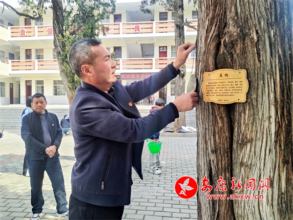 本網(wǎng)訊(通訊員 潘文進(jìn))3月12日,旬陽市廟坪九年制學(xué)校20余名共青團(tuán)員學(xué)生志愿者,在黨員教師的帶領(lǐng)下,共同為該校園里的古樹名木掛牌。
