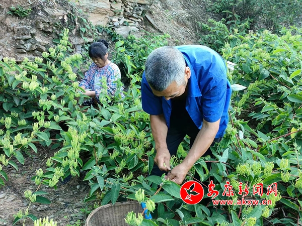 近日,旬陽(yáng)市關(guān)口鎮(zhèn)西坡村成了一片忙碌而充滿(mǎn)希望的金色海洋,到處可見(jiàn)一簇簇、一蓬蓬的金銀花綴滿(mǎn)枝頭,青翠的綠葉、淡黃的花瓣隨風(fēng)起舞,陣陣微風(fēng)吹過(guò),花朵的清香撲鼻而來(lái)。