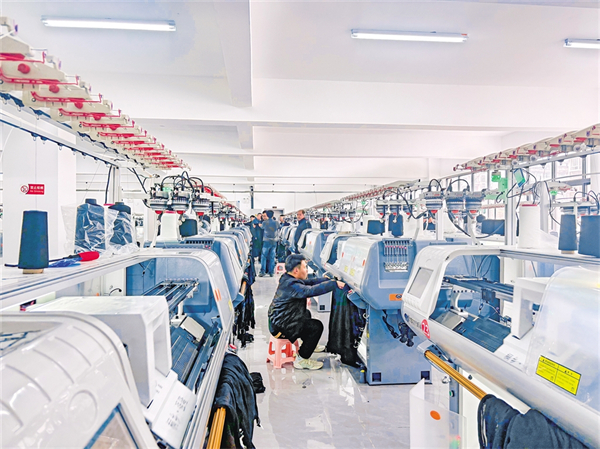 工人正在吉創(chuàng)暉羊毛衫工廠調試機器