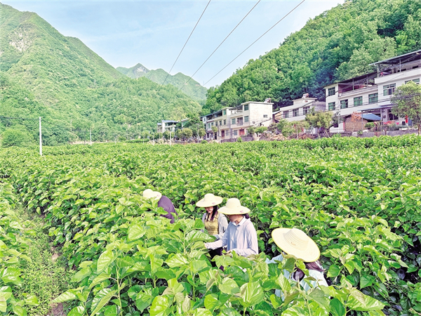 葉葉關(guān)情織富路,步步為營(yíng)振鄉(xiāng)村。夏風(fēng)過(guò)處,煙田涌浪、茶山疊翠、桑園滴翠。這片131平方公里的熱土上,“三葉”經(jīng)濟(jì)正書(shū)寫(xiě)著“綠水青山就是金山銀山”的生動(dòng)實(shí)踐。