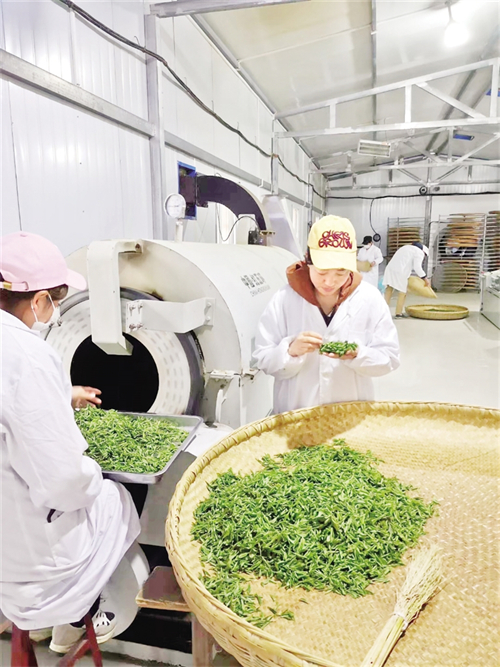 沿著九曲山路攀至絲鋪村五龍山,1200米的海拔高地,500畝生態(tài)茶園豁然舒展在眼前。茶農(nóng)們星羅棋布地穿梭在茶園,夏茶葉紛紛從茶樹(shù)間跌落。“高山茶回甘足,這片云海就是天然保鮮庫(kù)。”村支部書(shū)記蔡家文輕捻茶葉,陣陣清香沁人心脾。旬陽(yáng)五龍山農(nóng)民種植專(zhuān)業(yè)合作社負(fù)責(zé)人王志富打開(kāi)茶廠卷簾門(mén),生產(chǎn)線熱氣蒸騰。“去年我們收購(gòu)了3000公斤鮮葉,加工了1000公斤干茶,產(chǎn)值達(dá)到30萬(wàn)元,輻射帶動(dòng)周邊村民端穩(wěn)飯碗。”