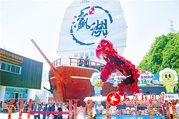4月29日上午,來自西安的3歲小朋友汐汐在父母的陪同下為舞獅點睛,拉開了瀛湖舞獅迎客的精彩序幕。于是,在景區(qū)全域,游客都能與舞獅偶遇并親密接觸。漢服小姐姐帶來的優(yōu)美舞蹈也引得游客駐足觀看,魚燈巡游帶領游客與魚同游,彰顯了瀛湖親水的魅力。