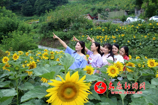 趁著周末,筆者走進(jìn)竹葉村,只見成片的油葵花迎著朝陽(yáng)競(jìng)相綻放,裝扮著通村公路和田坎道路,處處是惹眼的金黃。微風(fēng)拂過,朵朵花盤迎風(fēng)搖曳,泛起陣陣黃綠相間的“浪花”。 不少游客在花海中打卡拍照留念,流連忘返。村里的農(nóng)家樂也是忙忙碌碌,客源不斷。