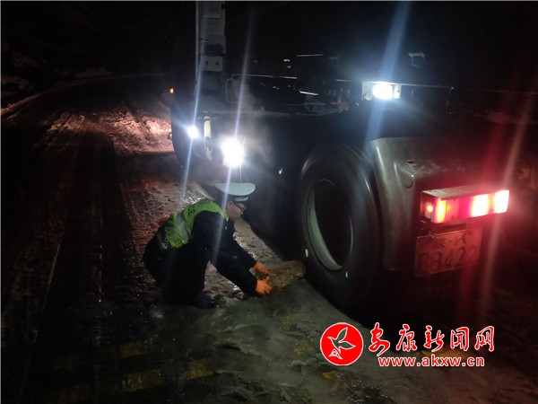 1月6日至8日鎮(zhèn)坪持續(xù)大到暴雪天氣,雞心嶺路段因海拔較高,積雪結(jié)冰嚴(yán)重,導(dǎo)致30余輛大型貨車滯留。鎮(zhèn)坪交警及時上山疏導(dǎo)交通,對發(fā)生緊急情況的車輛進行救援,并對未采取防滑措施的車輛進行勸返,截至1月8日上午11時交警仍然在該路段進行救援工作。(圖文/趙榮鵬)JxD安康新聞網(wǎng)