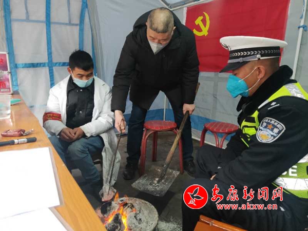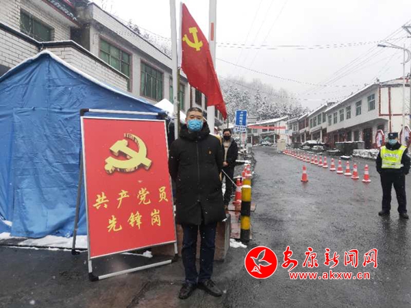 前往值守點的當(dāng)天,天氣突變,鵝毛般的大雪漫天飛舞。值守點位于縣城最北邊的山頂上,氣溫降至0度以下,盡管大家都添加了保暖衣,換上了厚衣服,但依然感覺渾身瑟瑟發(fā)抖,雙頰凍得隱隱作痛。作為東溝埡卡點黨員先鋒崗中黨齡最長、年齡最大的黨員,陳曉華主動要求參加首班值守。按照要求,值勤崗哨必須24小時不離人,盡管室外崗哨兩側(cè)都有高清探頭,在室內(nèi)完全可以監(jiān)控進出的車輛和行人,但他始終堅守在室外的哨廳,維護卡點秩序、疏導(dǎo)通行車輛、引導(dǎo)行人登記。年輕的同志讓他進屋休息,他說:“大家都在忙,我也不能閑著嘛。既然來了,就不能偷懶。”