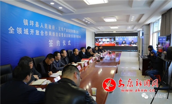 本網(wǎng)訊(通訊員 何丹)為奮力奪取疫情防控與經(jīng)濟(jì)發(fā)展“雙勝利”,深入推進(jìn)開(kāi)放招商工作,擴(kuò)大開(kāi)放水平,增強(qiáng)發(fā)展動(dòng)力。3月20日,鎮(zhèn)坪縣人民政府與泛華產(chǎn)業(yè)投資有限公司舉行了全領(lǐng)域開(kāi)放合作暨縣企融合發(fā)展合作共建協(xié)議簽約活動(dòng)。縣委副書(shū)記、縣長(zhǎng)李平和泛華集團(tuán)董事長(zhǎng)楊天舉分別在鎮(zhèn)坪和北京出席視頻洽談,并代表雙方簽約。縣委常委、副縣長(zhǎng)涂世昌主持視頻簽約儀式。