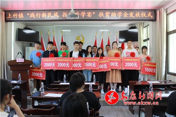 在升學(xué)禮上,宣讀了《上竹鎮(zhèn)2020年度“踐行新民風(fēng)•不辦升學(xué)宴”教育扶貧助學(xué)活動實(shí)施方案》,按照一本2000元,二本1500元的標(biāo)準(zhǔn)為18學(xué)生發(fā)放了扶貧助學(xué)金,共計(jì)30500元。學(xué)生代表印想想發(fā)言,她表示,堅(jiān)決向“升學(xué)宴”“謝師宴”說不,自己會更加努力學(xué)習(xí),不負(fù)眾望,知恩感恩,做文明新風(fēng)的倡導(dǎo)者。學(xué)生家長代表陳昌瓊在儀式上發(fā)言,將一如既往地弘揚(yáng)新民風(fēng),自覺抵制大操大辦、鋪張浪費(fèi),做移風(fēng)易俗的踐行者。在活動現(xiàn)場,學(xué)生家長也倍感自豪,臉上洋溢著幸福的笑容,紛紛表示,黨委政府通過開展新穎的慶祝活動,給孩子們留下珍貴的記憶,既達(dá)到了革除陋習(xí)的目的,讓“里子”好,又讓百姓“面子”亮。
