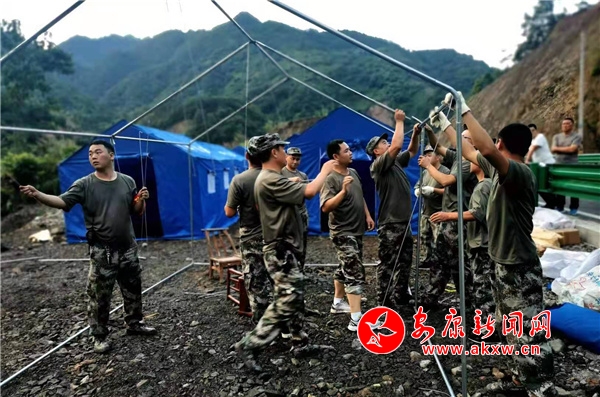 這支隊伍到達現(xiàn)場后,立即組織轉(zhuǎn)移受災(zāi)群眾、轉(zhuǎn)移物資、搭建帳篷......他們的到來極大地增強了受災(zāi)群眾的信心,軍民一心,團結(jié)抗災(zāi),一場緊急而有序的搶險行動迅速展開。