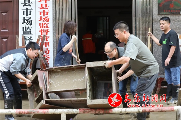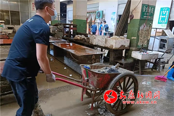 在自救的同時(shí),9月20日起,縣市場(chǎng)監(jiān)管局的干部們同步投入到重災(zāi)區(qū)農(nóng)貿(mào)市場(chǎng)的清淤工作中。在此次災(zāi)情中,農(nóng)貿(mào)市場(chǎng)受災(zāi)最為嚴(yán)重,各類設(shè)施受損嚴(yán)重,垃圾污泥成片,污水橫流,一片狼藉,完全不能投入使用。在農(nóng)貿(mào)市場(chǎng),大家自帶工具集中投入到這場(chǎng)農(nóng)貿(mào)市場(chǎng)“美容戰(zhàn)”中,加緊清理淤泥、疏通水渠、打掃地面。 淤泥太厚了,他們就用刮板推;水渠堵了,他們就用手去疏通;地面太臟了,他們就用沖水管去沖;污泥流不出去,他們就用小推車一車一車地運(yùn).......面對(duì)受災(zāi)的商戶,干部們認(rèn)真做好安撫,鼓勵(lì)經(jīng)營(yíng)戶重拾信心,重建美麗家園。