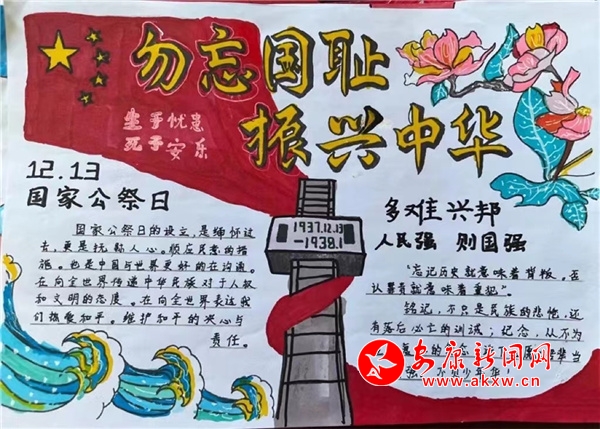 為緬懷抗戰(zhàn)先烈的英雄事跡,牢記侵略戰(zhàn)爭(zhēng)給中國(guó)人民造成的深重災(zāi)難,增強(qiáng)少年兒童的社會(huì)責(zé)任感和使命感,12月13日,曾家初級(jí)中學(xué)組織開展了以“勿忘國(guó)恥 吾輩自強(qiáng)”為主題的國(guó)家公祭日主題宣傳教育活動(dòng)。(圖文/吳金蕾) Efg安康新聞網(wǎng)