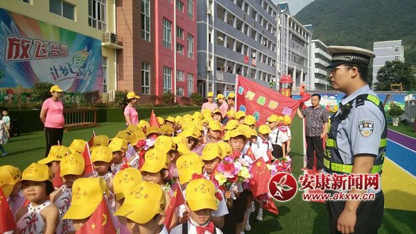 白河交警為學(xué)生們并佩戴安全小黃帽