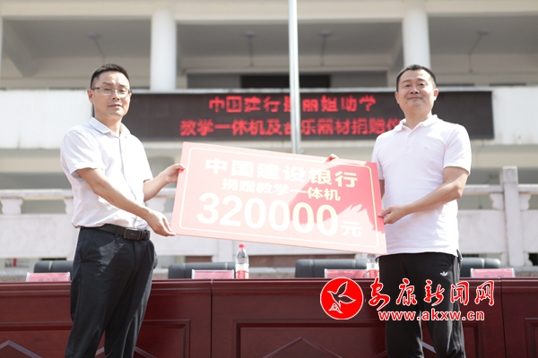 本網(wǎng)訊 (通訊員 劉成軍)金秋送爽,丹桂飄香。9月18日下午,由中國建行向紫陽縣高橋鎮(zhèn)初級中學(xué)捐贈的教學(xué)一體機及音樂教室設(shè)施設(shè)備的捐贈儀式在該校操場舉行,紫陽縣縣委常委、副縣長張雪峰出席捐贈儀式,麗姐助學(xué)負(fù)責(zé)人孫麗、鎮(zhèn)相關(guān)領(lǐng)導(dǎo)及高橋中學(xué)全體師生參與活動。