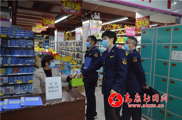 檢查中,執(zhí)法人員著重檢查了“健康碼”、口罩佩戴、測體溫等最基本的疫情防控措施落實情況,督促經(jīng)營單位做好員工健康記錄、場所通風、清潔消毒等防疫管理,要求藥店加強對退燒、止咳藥品的銷售管理,落實好實名登記制度。