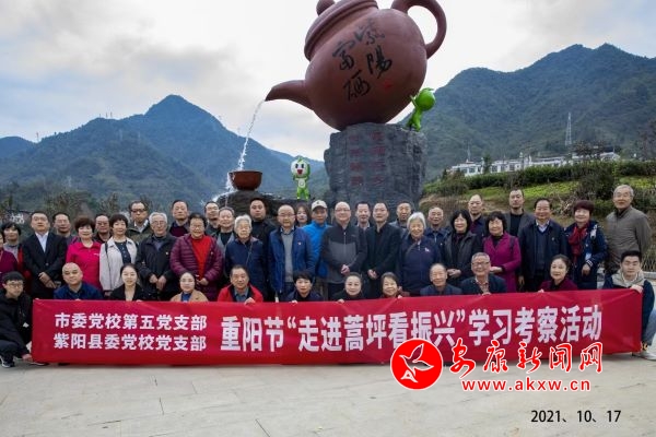 本網(wǎng)訊(通訊員 路永婷)金秋十月,重陽之際,市委黨校第五黨支部聯(lián)合紫陽縣委黨校黨支部,來到紫陽縣蒿坪鎮(zhèn)開展重陽節(jié)“走進(jìn)蒿坪看振興”學(xué)習(xí)考察活動,市縣黨校三十余名退休干部職工參加。