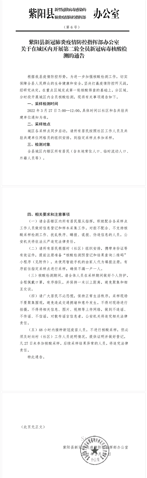 通告!紫陽縣在城區(qū)開展第二輪全員新冠病毒核酸檢測