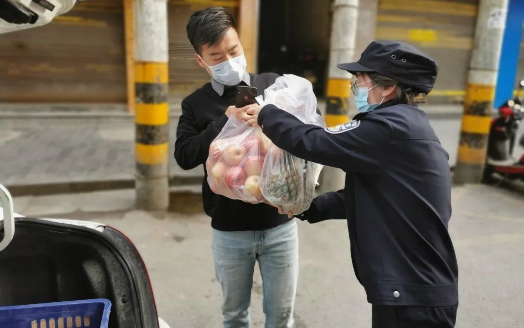 “大娘,你別急,請你放心,我們馬上把蔬菜給你送到”;“閨女,謝謝你!我給你錢”;“大娘不用給錢,算我盡點兒心意”。4月3日,負(fù)責(zé)雞家咀28號樓封控工作的民警蔡小敏得知獨居老人譚大娘沒有菜吃,立即自掏腰包購買了蔬菜、水果送到大娘手中,大娘硬要塞錢給她,蔡小敏婉言拒收。