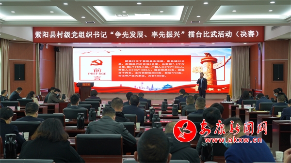 本網(wǎng)訊(通訊員 何珣)近日,紫陽縣委組織部舉辦的2022年度村級黨組織書記“爭先發(fā)展、率先振興”擂臺比武活動(決賽)引發(fā)全縣熱議,從17個鎮(zhèn)級擂臺比賽中脫穎而出的優(yōu)秀村黨支部書記同臺競技講思路、談體會、曬成績、亮答卷,全方位交流展示抓黨建促鄉(xiāng)村振興工作實踐成效,贏得現(xiàn)場陣陣掌聲。RJ9安康新聞網(wǎng)