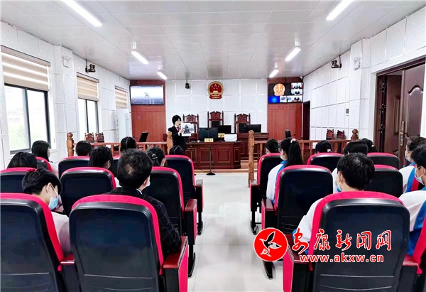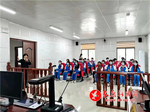 本網(wǎng)訊(通訊員 唐燕)5月25日,新搬遷的蒿坪中心人民法庭迎來了第一批來參觀的“小客人”——蒿坪中學(xué)初二年級(jí)學(xué)生,他們著裝整齊,朝氣蓬勃,在蒿坪法庭庭長(zhǎng)的引導(dǎo)下,參觀了訴訟服務(wù)中心、審判庭等場(chǎng)所,法官細(xì)致介紹了審判庭的設(shè)置、法徽與法袍的含義、法槌的來歷,以及現(xiàn)有的科技設(shè)備,結(jié)合具體案例講解了《民法典》中與未成年切身相關(guān)的法律規(guī)定,同學(xué)們?nèi)探蚪蛴形兜芈犞,時(shí)不時(shí)用筆詳細(xì)地做著筆記,對(duì)審判庭內(nèi)的一切既興奮又好奇。