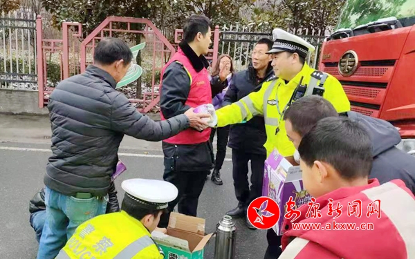 紫陽交警為滯留駕乘人員送上“暖心泡面”