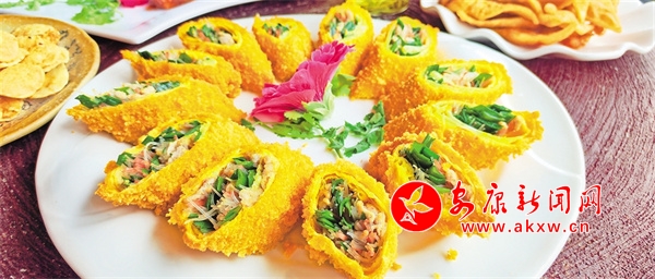 采風(fēng)團的第一站,來到了蒿坪鎮(zhèn)雙星社區(qū)的聚福山莊,雙星社區(qū)是“十二五”期間建設(shè)的移民搬遷社區(qū),因為人口聚集,村民王益軍在“十三五”期間搶抓蒿坪鎮(zhèn)發(fā)展農(nóng)旅產(chǎn)業(yè)的機遇,開辦了聚福山莊農(nóng)家樂。通過當(dāng)?shù)卣哿Υ蛟?ldquo;紫陽味道”品牌,聚福山莊開發(fā)出一系列具有當(dāng)?shù)靥厣拿朗承〕,用佳肴留住客人的腳步與味蕾。“香酥羊肉餅、炸響鈴、蒸米蒿饃、農(nóng)家香酥里脊卷、油渣餅都是我們這的特色,原材料土生土長、綠色健康,客人吃了都說好。”在大廚汪顯峰簡單直白的介紹下,一行人食指大動,用親身體驗言表出真實感受。“這個蒸米蒿饃很有特色,小時候物資匱乏,只好用面粉拌著山上長的米蒿用來蒸饃吃,現(xiàn)在生活好了,再吃蒿子饃真是別有一番風(fēng)味,希望當(dāng)?shù)卣苤r(nóng)民、農(nóng)企深挖本土資源特色,將小風(fēng)味打造成大產(chǎn)業(yè)。”作家、書法家蔣典軍看到眼前的小吃,發(fā)出了滿心感慨。